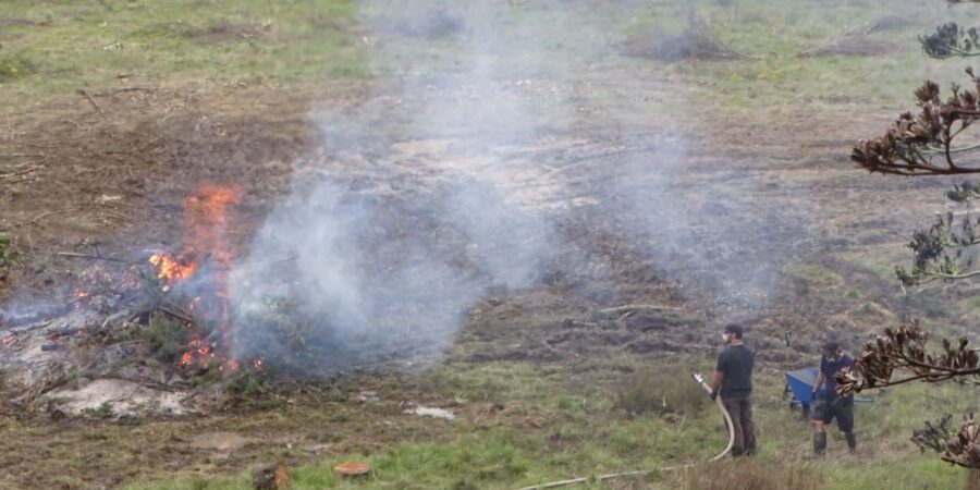 The April ‘burn team’ were Dan and Woody on tractor, with Indy, Kerstin and Tankai on the hoses and extinguish.