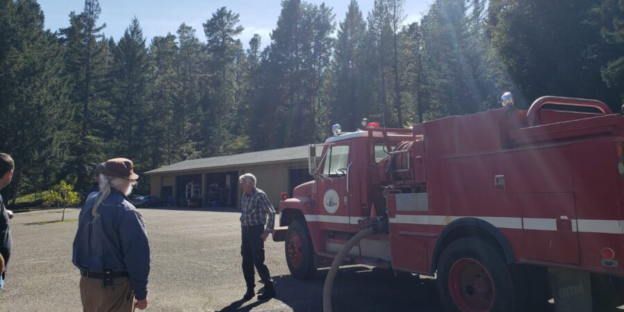 We are particularly grateful as always to our local Volunteer Fire Department, especially Chief Steve Ginesi, and Caerleon Safford (also of Fire Safe Sonoma) who gave invaluable advice on clearing, and allowed us use of their hoses and retired truck to safely manage our major burn this week. Also we were very lucky that CalFire’s crews helped clear our back road two years ago, and this year they brought in fire-fighters training on chain-saws, who took down trees behind Jigme Rinpoche’s cabin.