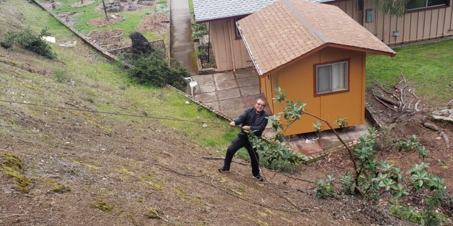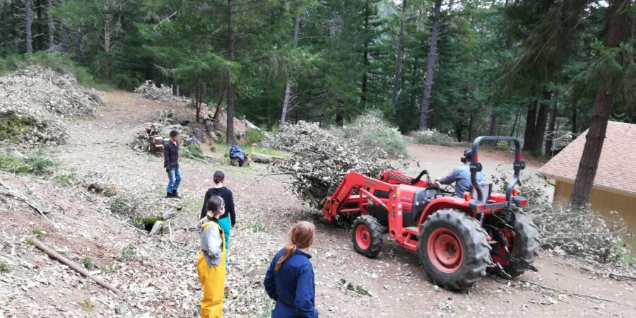 As those of you who have visited Ati Ling / PPI know, the property is located in the midst of very dense forest on rolling hills. With the increase in huge wildfires on the West Coast, clearing the land around our buildings has become increasingly vital. In late 2019 we decided to focus on land clearing as much as possible, with the help of all the fantastic volunteers who come to us through Workaway.