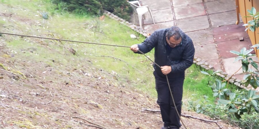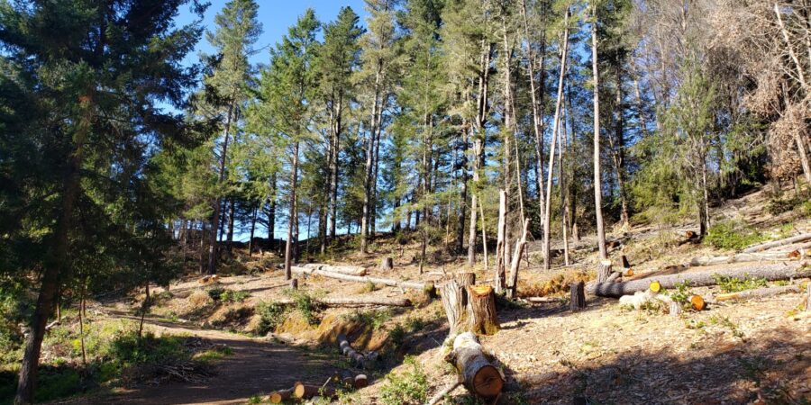 We began in early January, and ever since have been felling trees, removing lower branches, pulling out scotch broom and other bushes, then chipping or burning the piles we produced. When the pandemic hit, all our rental activity ground to a halt, and as California introduced shelter-in-place orders which closed even the local parks and beaches, we realized how fortunate we were to still be able to do this work, out in the fresh air. And we’ve had fun all the hours spent working on the hillsides with the Workawayers — from January: Ariana, Emily, Lauren, Alejandro, Laura, Andrew, Sharna, Damiana, David, Sam and Sandy. We are eternally grateful for all their help, and are happy to still be in lock-down with five of them!