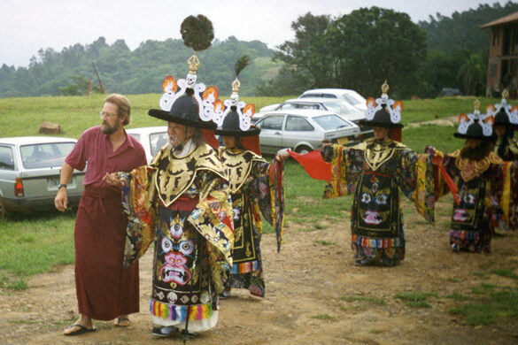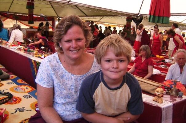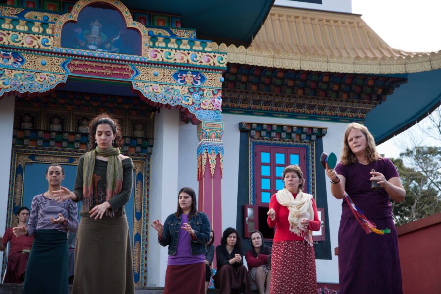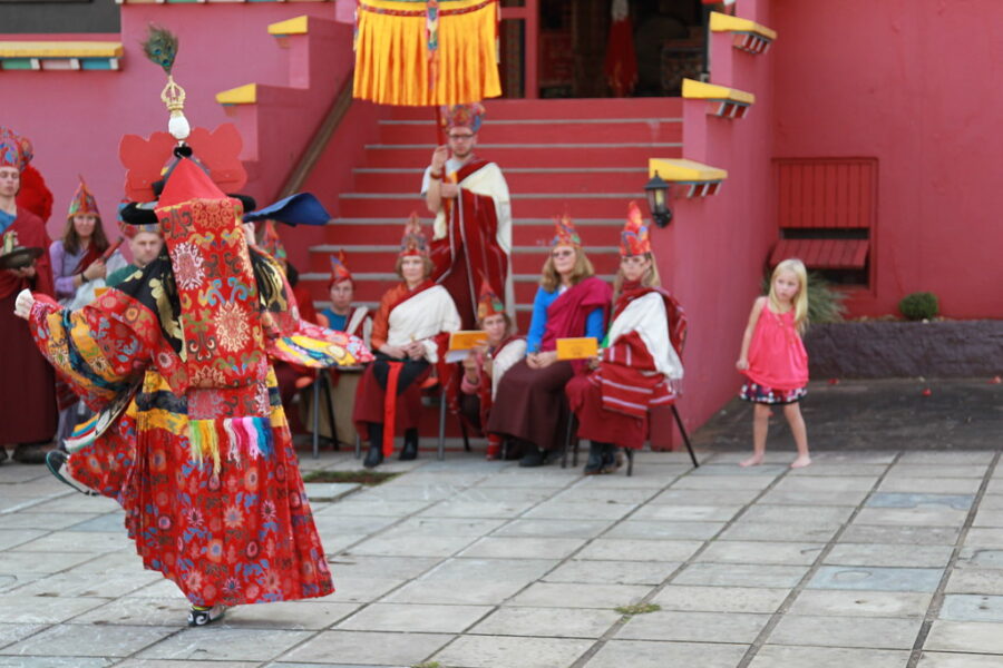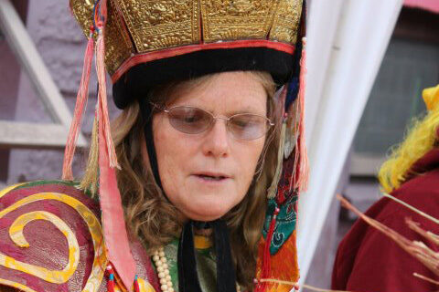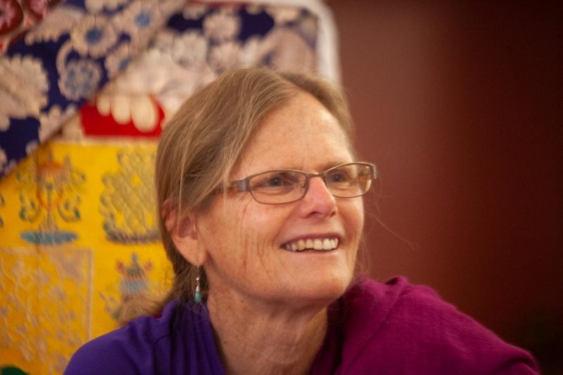 Lama Trinley, who with her husband Lama Dorje, was the resident lama of Dechen Ling in Cottage Grove, Oregon, died on Sunday evening, October 25th. She died at home from cancer, which she had managed for many years with courage, humor, insight, and wisdom. Her sons Sam and Ian have been at home with her since the beginning of the pandemic and their presence was a source of special happiness. Lama Trinley was treasured as a wonderful retreat companion and excellent writer. She and Lama Dorje upheld Chagdud Gonpa’s lama dancing tradition, giving instructions both in North and South America for many years. In her years of parenting two sons, guiding Dharma practitioners and undergoing extensive medical treatments, her devotion to Chagdud Rinpoche and his lineage transmissions were uninterrupted. When any free moment arose, she made formal meditation her priority, and although she spoke quietly and not very much, her words conveyed the profound equanimity of a realization holder. Her radiance shines through the sorrow of this moment.